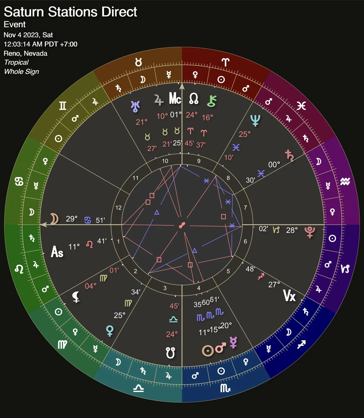Here’s the mundane chart for when Saturn stations direct: